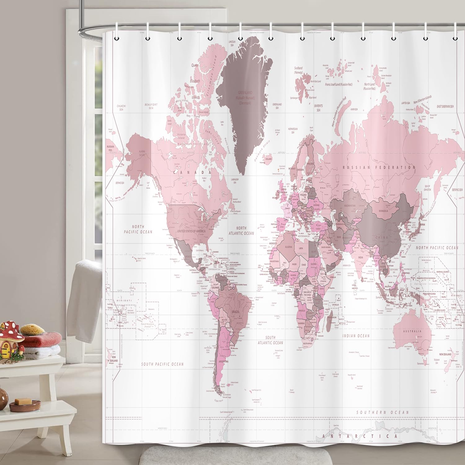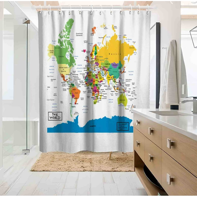 World Map Shower Curtain Educational Geography Earth Technology Bathroom Curtain Decor Waterproof Polyester Fabric with 12 Hooks 72 x72 Walmart Very well made.