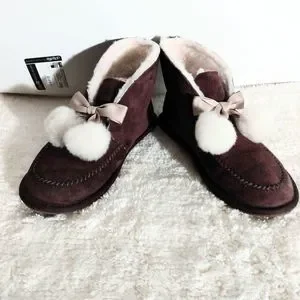 UGG Australia Kallen Suede Moc Toe Pom Pom Slippers Size 5 Brown 1017541 Very well made.