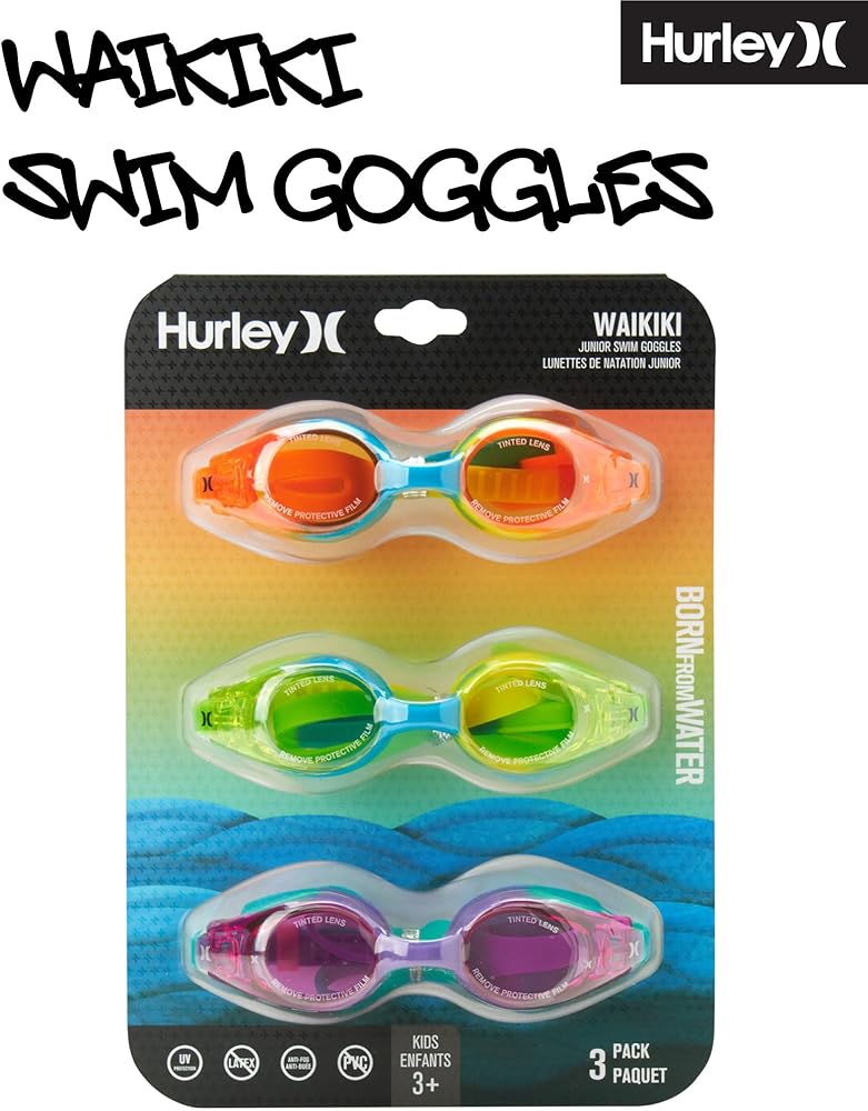 Hurley Kids Swim Goggles 3 Pack No Leak Anti Fog Ultrafit Swimming Goggles WAIKIKI Kids Goggles for Swimming Ages 3 Very well made.