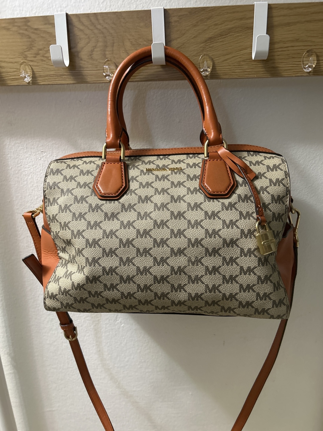 Michael Kors Mercer Medium Dome Satchel Handbag Authentic Karrot Very well made.