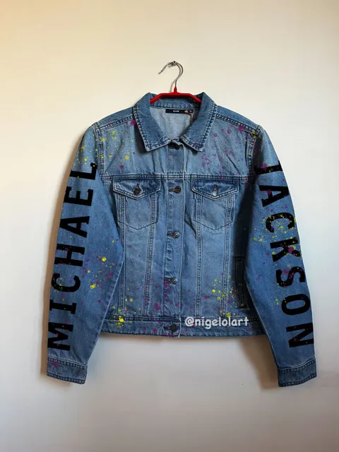 Michael Jackson Painted denim jacket Custom gifts Jean jacket blue denim jacket King of pop mj jacket dangerous 222.32 Buy online with delivery Very well made.