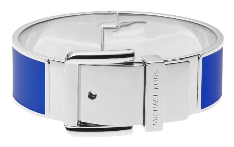 MICHAEL KORS SILVER WIDE BLUE ENAMEL HINGE BELT BUCKLE BANGLE BRACELET MKJ2875 Very well made.