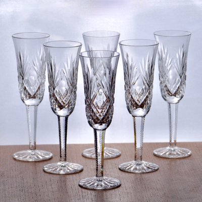 Large Antique Hand Cut Crystal Champagne Flutes 1920s Set of 6 for sale at Pamono Very well made.