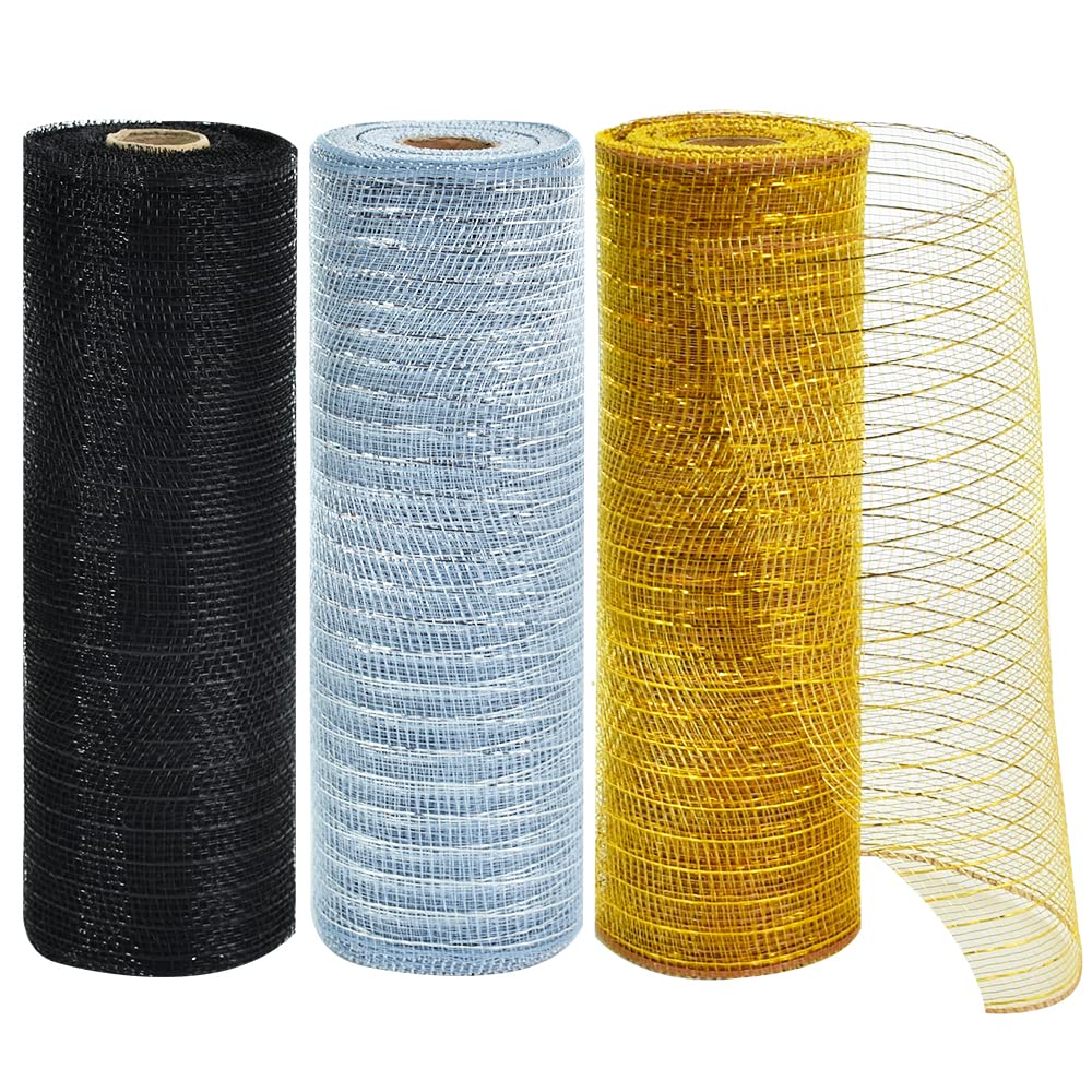 ChYoung 4 Rolls Deco Mesh Ribbon for Wreaths 10 Inch x 10 Yards Metallic Foil Bow Wreath Making Supplies DIY Crafts Set for 4th of July Thanksgiving Very well made.