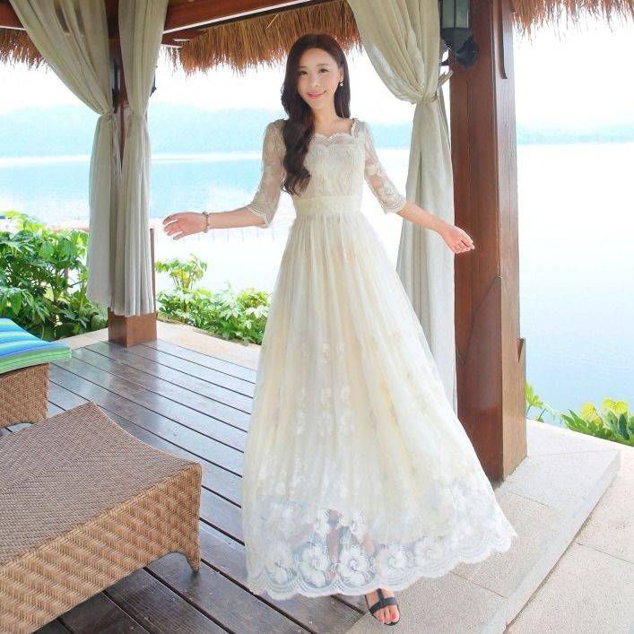 Korean white dress women Flower lace Beach Summer new style long dress Shopee Philippines Very well made.
