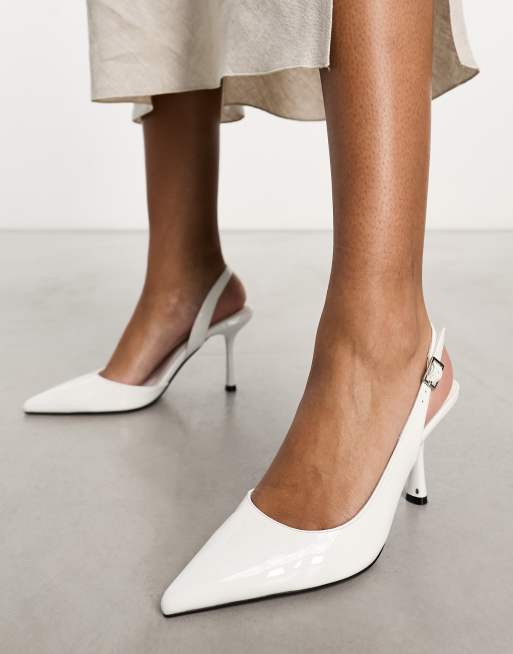 ASOS DESIGN Simmer Slingback schoenen met halfhoge naaldhak in wit lakleer Very well made.