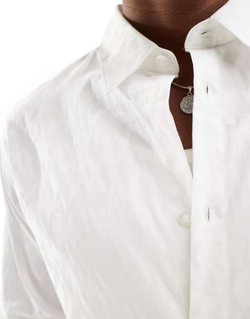Armani Exchange Chemise a manches longues en satin brillant avec logo sur l ensemble Blanc casse ASOS Very well made.