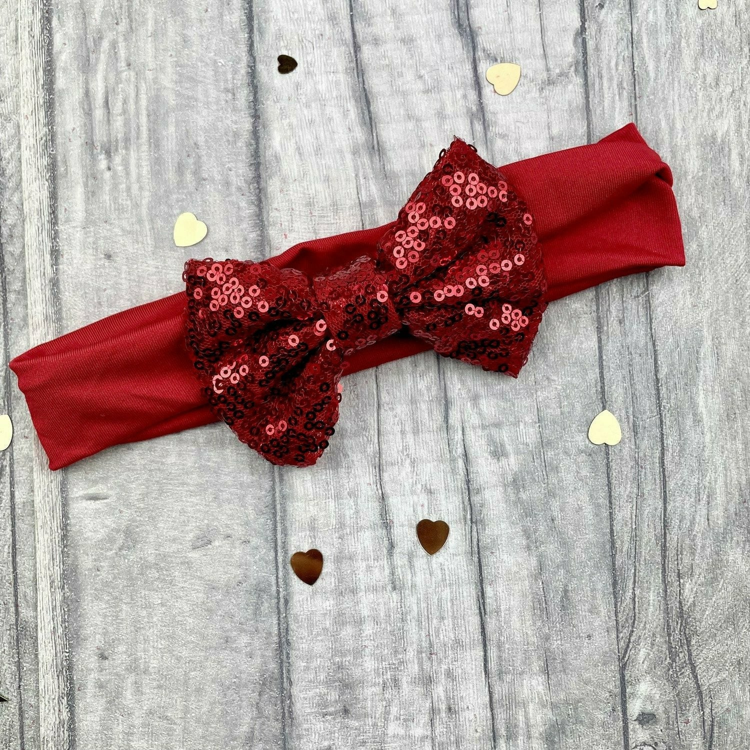 Baby Girl Red Headband with Red Sequin Glitter Bow Very well made.