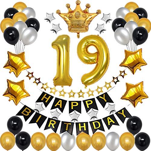 19th Birthday Decorations for Men Boy Women Girl Black and Gold Birthday Decorations for 19th and 91st Happy Birthday Party with 19 Gold Number Balloon Happy Birthday Banner and Gold Crown Balloons Very well made.
