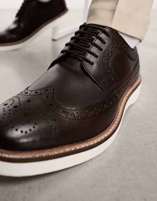 ASOS DESIGN Brogue schoenen van bruin leer met witte sleehak Very well made.