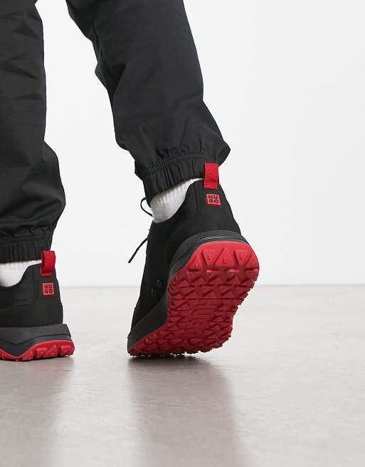 HUGO Kane Runn Sneakers in zwart met rode zool Very well made.