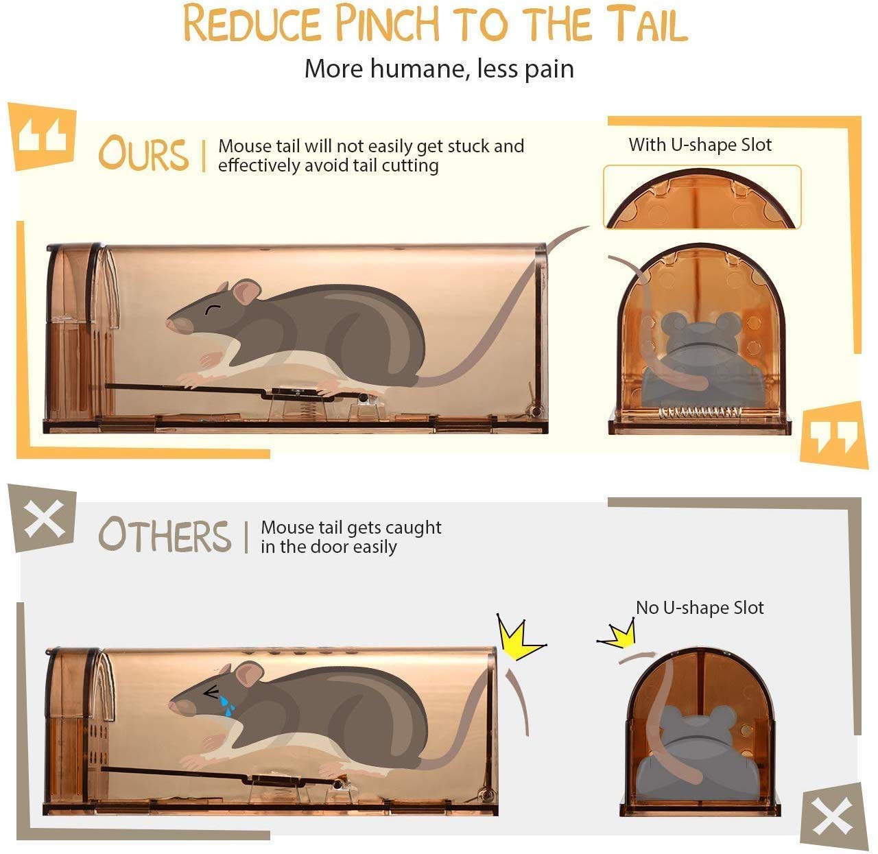 Humane Mouse Trap 2 Pack Mice Trap Reusable Rodent Trap No Kill Live Mice Catch Cage Indoor and Outside Mouse Traps Kids Pets Safe Easy to Set 5.7 6.3 17 Amazon Garden Very well made.