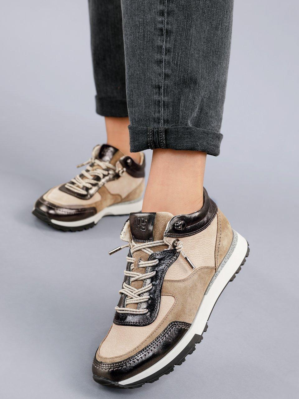 Paul Green Sneakers van kalfsnubuckleer donkerbeige multicolour Very well made.