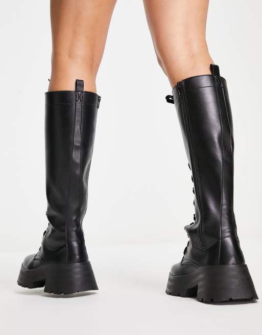 ASOS DESIGN Cassius Kniehoge laarzen met veters in zwart Very well made.