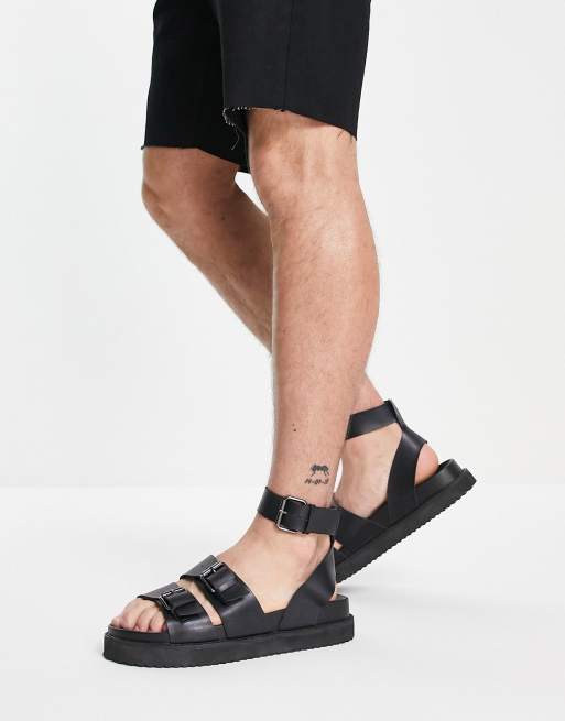 ASOS DESIGN Sandalen met dikke zool en zilveren gespen in zwart Very well made.