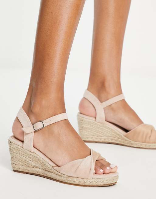 Glamorous Wide Fit Espadrille sandalen met brede pasvorm en halfhoge sleehak in beige Very well made.