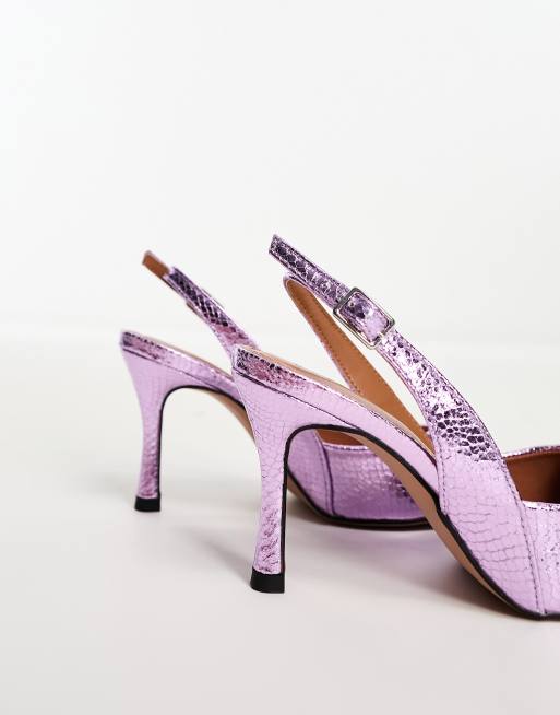 ASOS DESIGN Samber Stiletto hakken met slingback bandje en brede pasvorm in metallic lila Very well made.