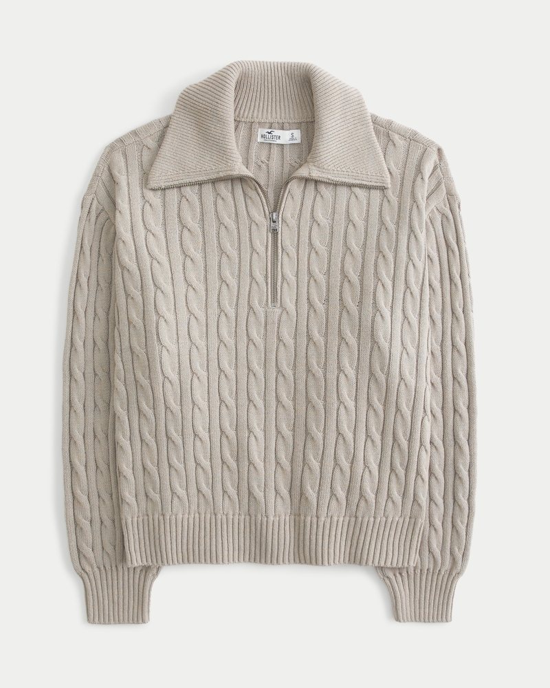 Women s Oversized Cable Knit Half Zip Sweater in Light Brown Stripe Size XXS from Hollister Very well made.