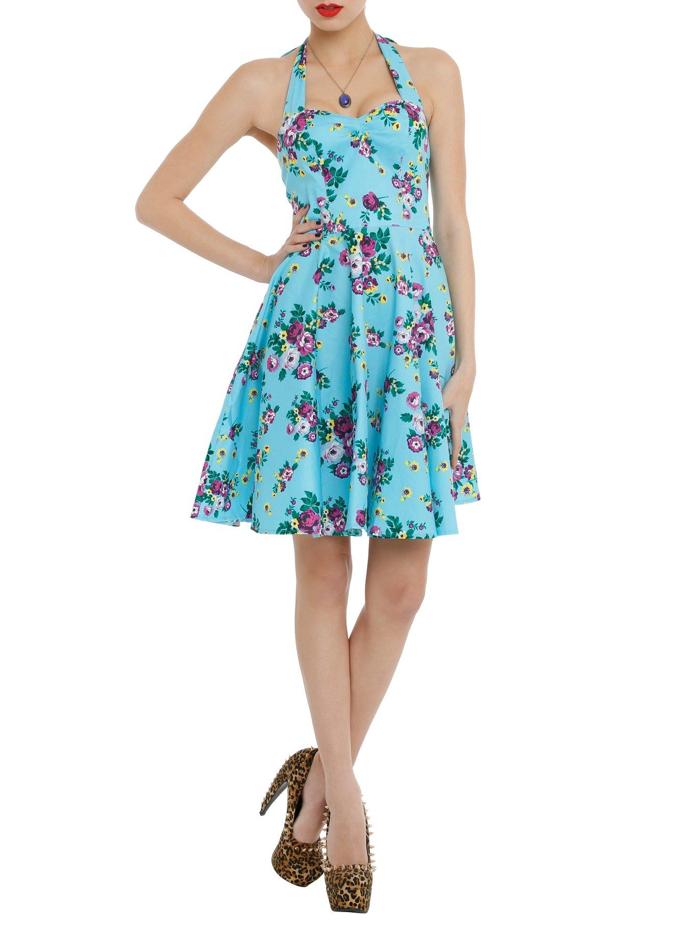 Hell Bunny Turquoise Floral Halter Dress Hot Topic Very well made.