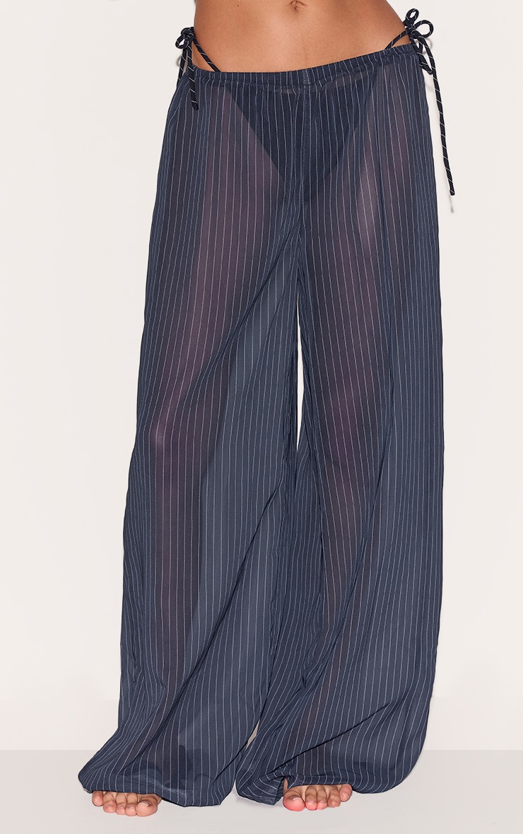 Navy Pinstripe Chiffon Beach Trousers Swimwear PrettyLittleThing Very well made.