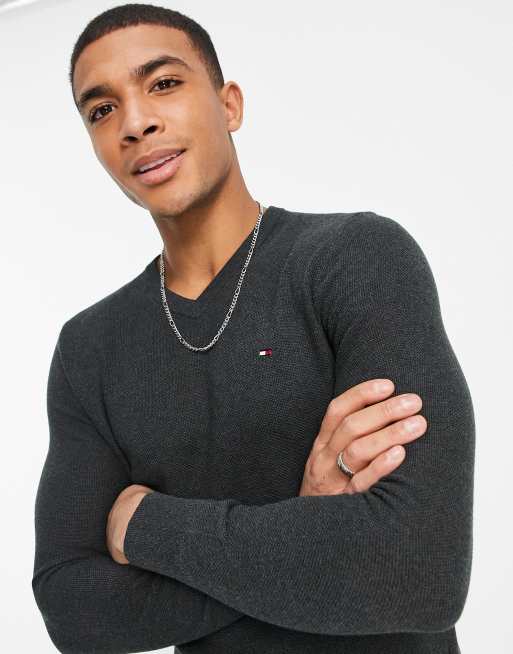 Tommy Hilfiger Trui met fijne structuur en V hals in grijs Very well made.