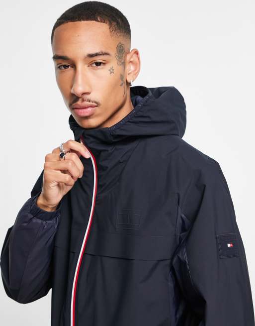 Tommy Hilfiger Tech jack met capuchon en iconische streep langs de rits van polyestermix in marineblauw NAVY Very well made.