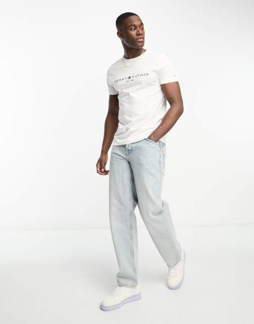 Tommy Hilfiger embroidered flag logo t shirt in white Very well made.