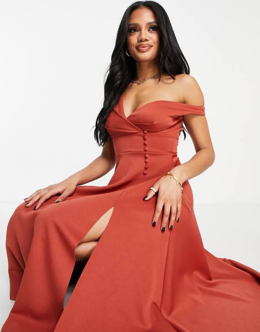 ASOS DESIGN Midi avondjurk met knoopdetail in roestbruin ASOS Very well made.