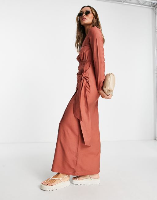 ASOS DESIGN Maxi jurk met wikkelrok in roestbruin Very well made.