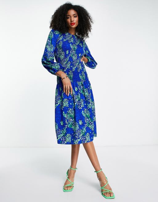 Never Fully Dressed Halflange gesmokte jurk in blauw met luipaardprint Very well made.
