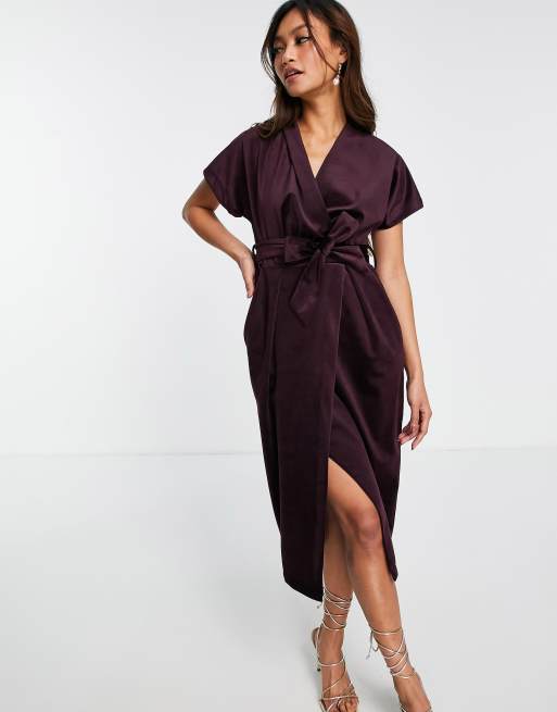 Closet London Petite Mini jurk van fluweel met kimonomouw en strikceintuur in pruimpaars Very well made.