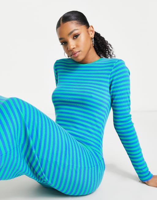 Only Gestreepte midi jurk in turquoise ASOS Very well made.