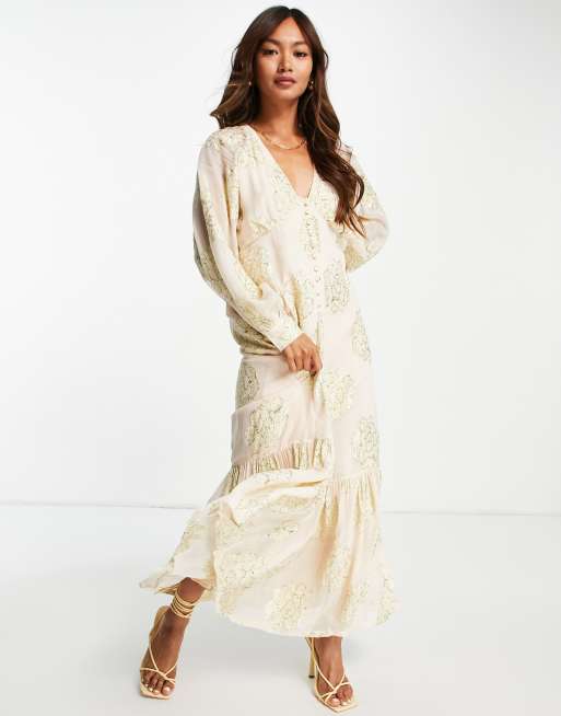 Lange jurk met knopen in marineblauw met overhemdkraag en Sahara Very well made.