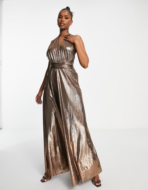 Goddiva Lange geplooide galajurk in goud Very well made.