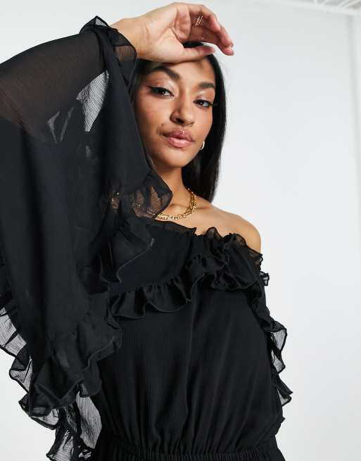 Topshop Tall frill ruffle bardot mini dress in black Very well made.