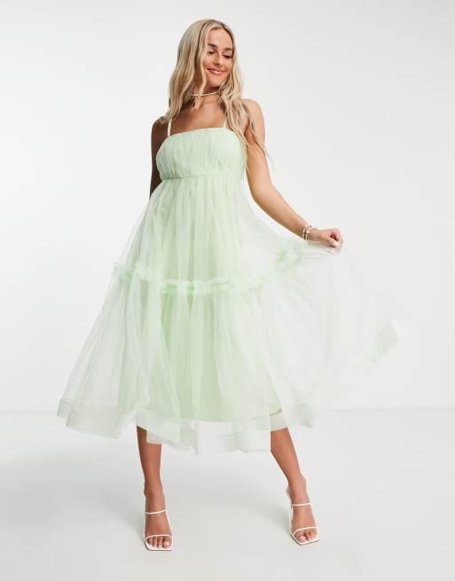 Lace Beads Midi jurk met stroken van tule in pastelgroen Very well made.