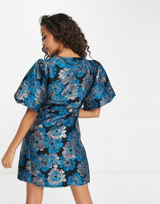 Vero Moda Mini jurk van jacquard in blauw met bloemen Very well made.
