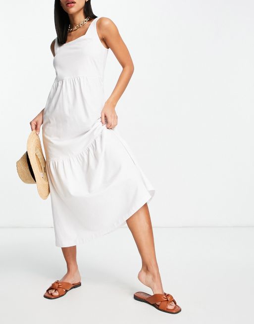 Urban Classics Aangerimpelde mouwloze midi jurk in wit Very well made.