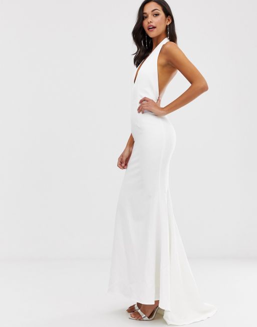Jarlo Lange jurk met extreem diepuitgesneden voorkant en lage rug in wit Very well made.
