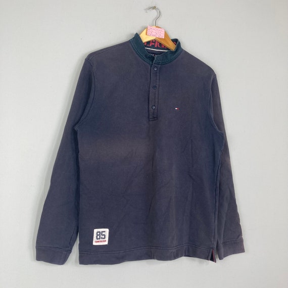 Vintage Rare TOMMY HILFIGER Quarter Button Sweatshirt Plain Tommy Hilfiger Jumper Pullover Tommy Hilfiger Sweater Unisex Navy Blue Medium Etsy Very well made.