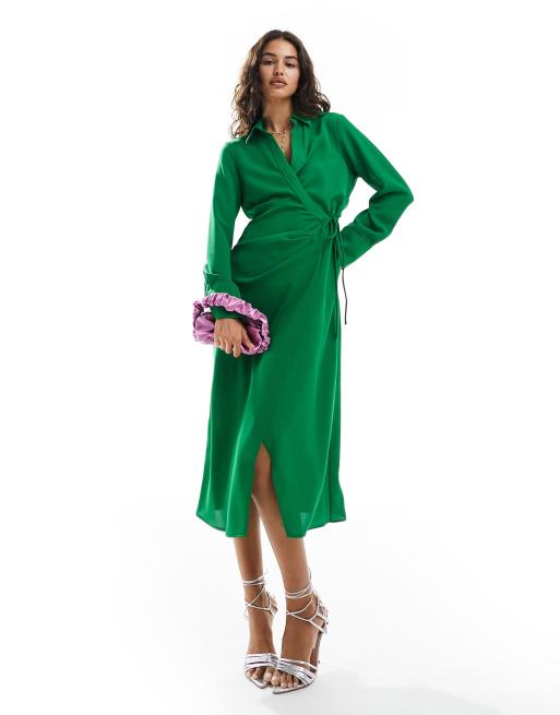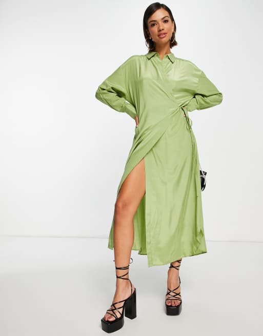 Mango Wikkeljurk met strikdetail in saliegroen Very well made.