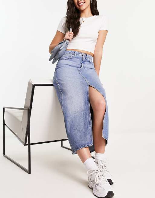 Denim midi rok met split Blauw Maat 42 60 Zizzi Very well made.
