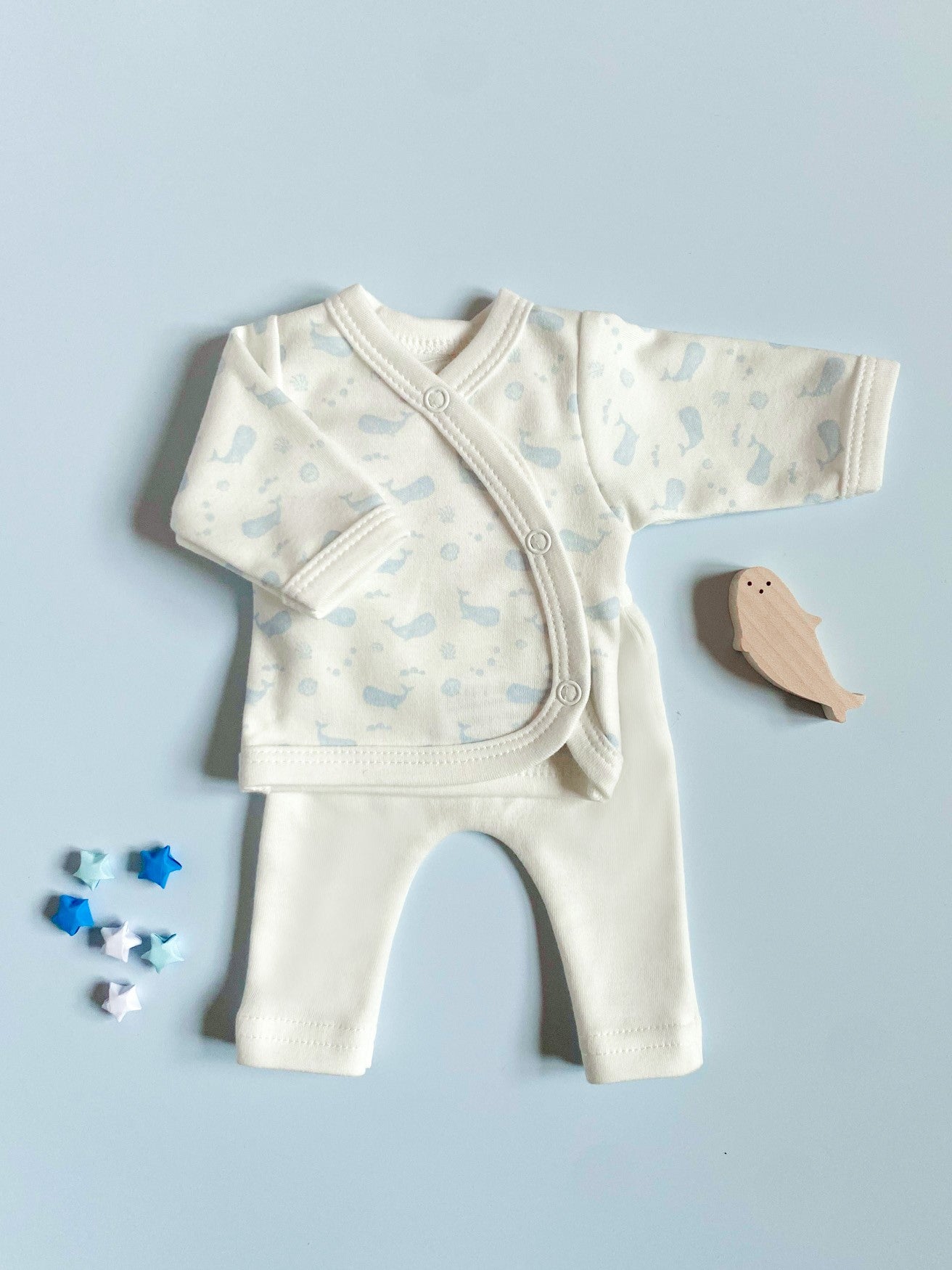 Premature Baby Set Wrap top trousers Ocean Blue Premium Organic Cotton Very well made.