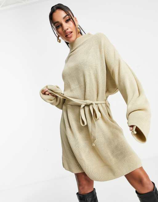 Petite Geribbelde Trui Jurk Met Riem En Rolhals Very well made.