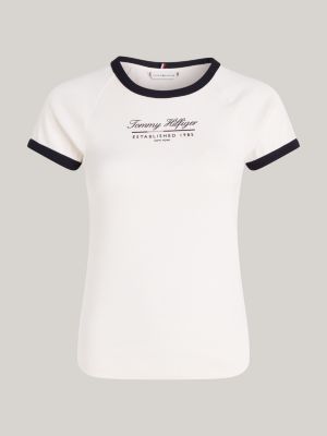 Contrast Trim Logo Slim T Shirt White Tommy Hilfiger Very well made.