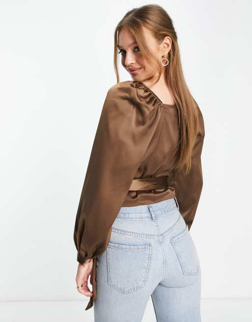 Vero Moda Aware satin wrap top in brown Very well made.