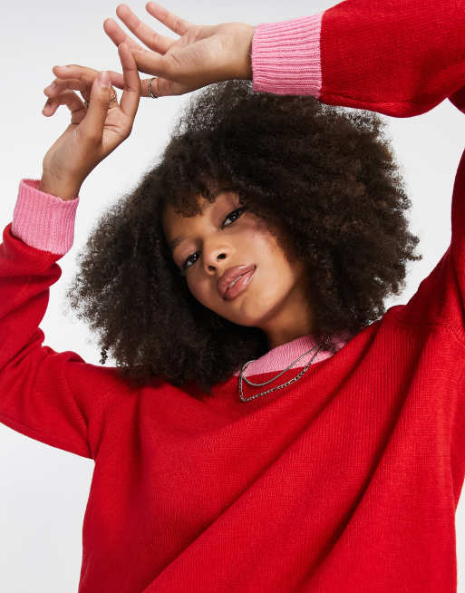 Pieces Exclusives Trui met kleurvlakken in roze en rood ASOS Very well made.