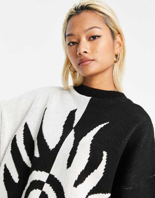 Topshop Gebreide oversized trui met vlammen in zwart wit Very well made.