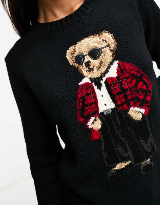 Polo Ralph Lauren Trui van gebreid katoen met feestelijk geklede beer in zwart Very well made.