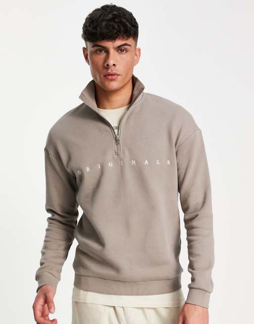 Jack Jones Originals oversized quarter zip sweatshirt with embroidery in beige Very well made.